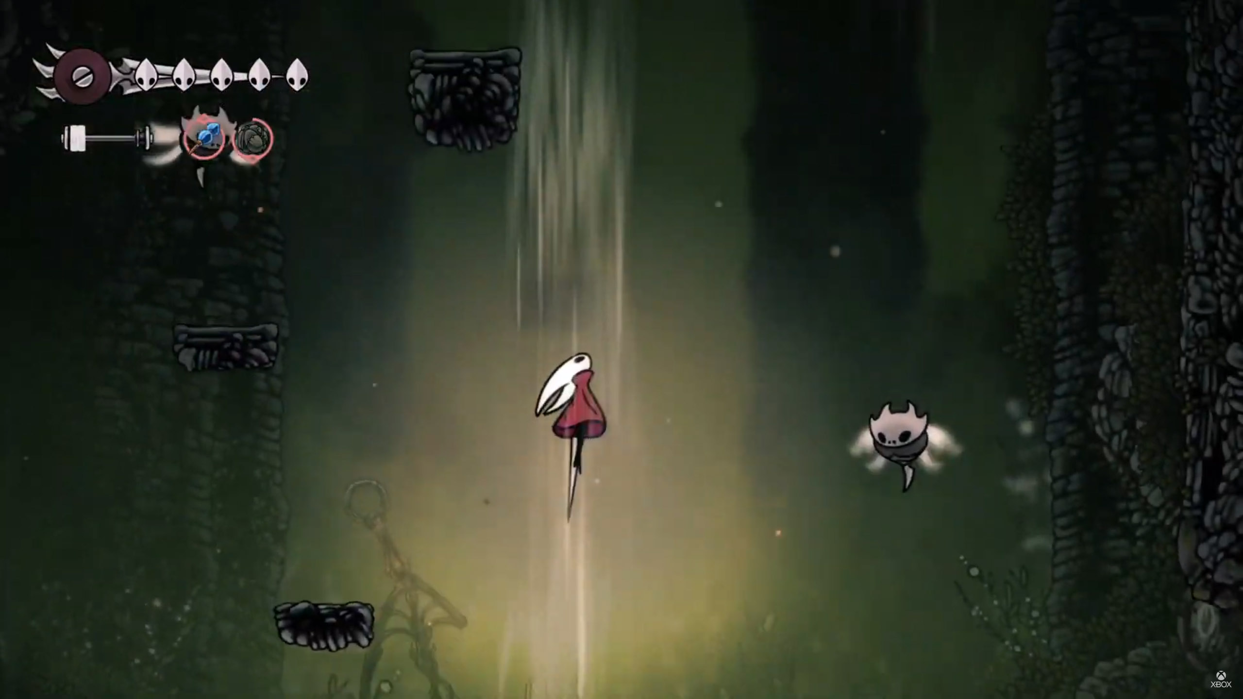 Uma das principais diferenças entre os protagonistas do primeiro jogo e para Hornet (protagonista de Silksong) é justamente a agilidade e versatilidade de movimentos. Silksong parece um jogo muito mais fluido e ágil, permitindo também uma grande variedade de movimentos com diferentes builds que possibilitam muitas formas de jogar, seja mais agressivo, atacando à distância, usando itens, etc. O que no meu ver torna o jogo bem mais equilibrado, ou seja, por mais que a dificuldade tenha aumentado, também aumenta a agilidade, cura e versatilidade dos movimentos do jogador.